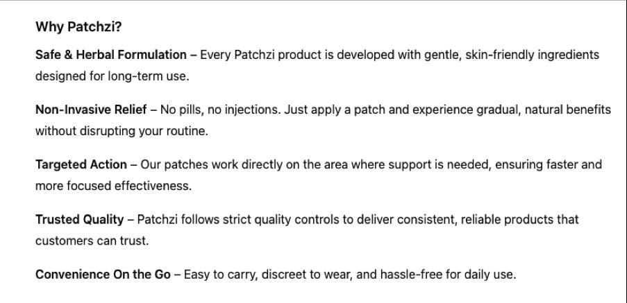 1-Clean and dry the area. 2-Remove the film from the patch and apply it to the natural herbal formula side. 3-Lasts up to 8 hours; repeat if necessary (within 2 hours between applications). 4-For best results, a 2-week treatment is recommended. WARNING: -For external use only. -Do not apply to wounds or damaged, broken, or irritated skin. -Keep the pouch sealed and avoid storing it in direct light.